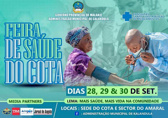 A feira decorre na sede comunal do Cota e nos sectores do Amaral e Capele. Além da assistência médica, serão distribuídos medicamentos de forma gratuita.O evento enquadra-se nas festividades do centenário do fundador da Nação, Dr. António Agostinho Neto.